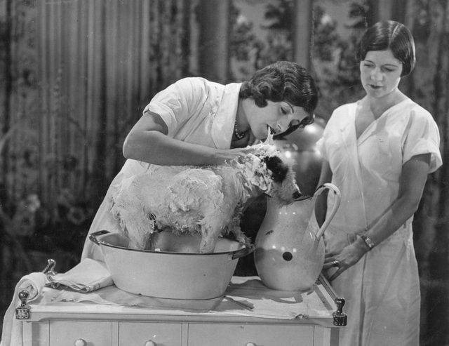 Hygiene is important for dogs too—and even was back then! This adorable terrier gets the full shampooing treatment from these two groomers in 1930 Los Angeles.