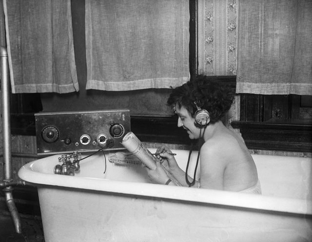 In 1925, this New York woman relaxes in the bath while filling out a crossword puzzle. Note that she also has the radio perched on the side of the tub, listening to it through headphones, which may not be entirely safe—but we’re loving her self-care vibes!