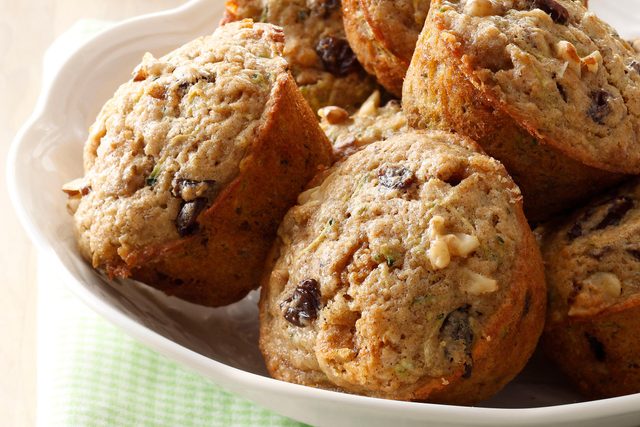 Shredded zucchini adds moistness to these tender muffins dotted with raisins and chopped walnuts. If you have a surplus of zucchini in summer as most of us do, this is a good way to use some of it. —Harriet Stichter, Milford, Indiana