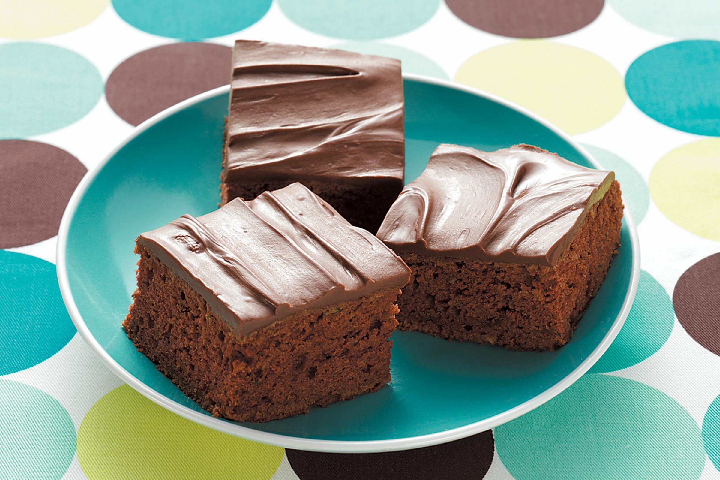 A fast-to-fix peanut butter and chocolate frosting tops these moist brownies that are a sweet way to use up your green garden squash. We really like the cake-like texture of these zucchini brownies. —Allyson Wilkins, Amherst, New Hampshire