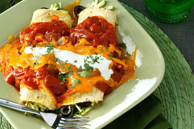 I love this enchilada recipe because it helps me serve a healthy but tasty meal to my family. Also, zucchini is so plentiful in the garden and this dish makes a great way to use it up. —Angela Leinenbach, Mechanicsville, Virginia