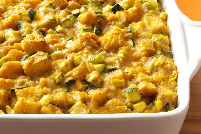My family loves this rich and comforting dish. The cheese disguises the zucchini, so my kids keep on eating it! —Debbie Amacher, Amherst, New York