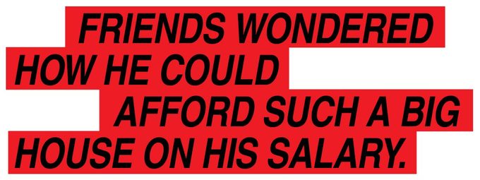 What’s a justice of the peace who makes around $35,000 a year doing with that much cash? Bargas thought. Suspicious, he called the police, who called the FBI. Soon, agents listened in as Bargas met with the justice of the peace, Tommy Tipton. Tommy pulled out a briefcase filled with $450,000 in cash, still in Federal Reserve wrappers, and swapped $100,000 of it for Bargas’s worn, circulated bills. The FBI then went to work investigating the serial numbers on the new bills.