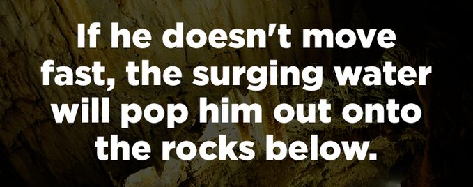 When they finally near the top of the crawl, there are barely four inches of air left between the water and the ceiling, not enough for them to keep their heads up to breathe.