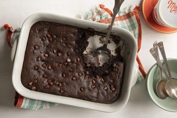 This chocolate dump cake fits right in with busy schedules—it requires no sifting, whisking or decorating. Just dump, stir, bake...