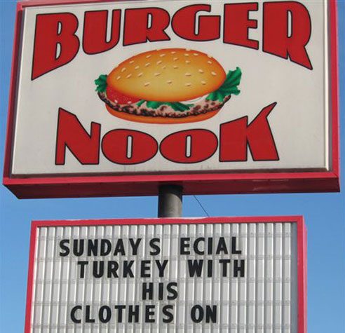 Amusing, silly, and downright weird signs from eating establishments across the country.
