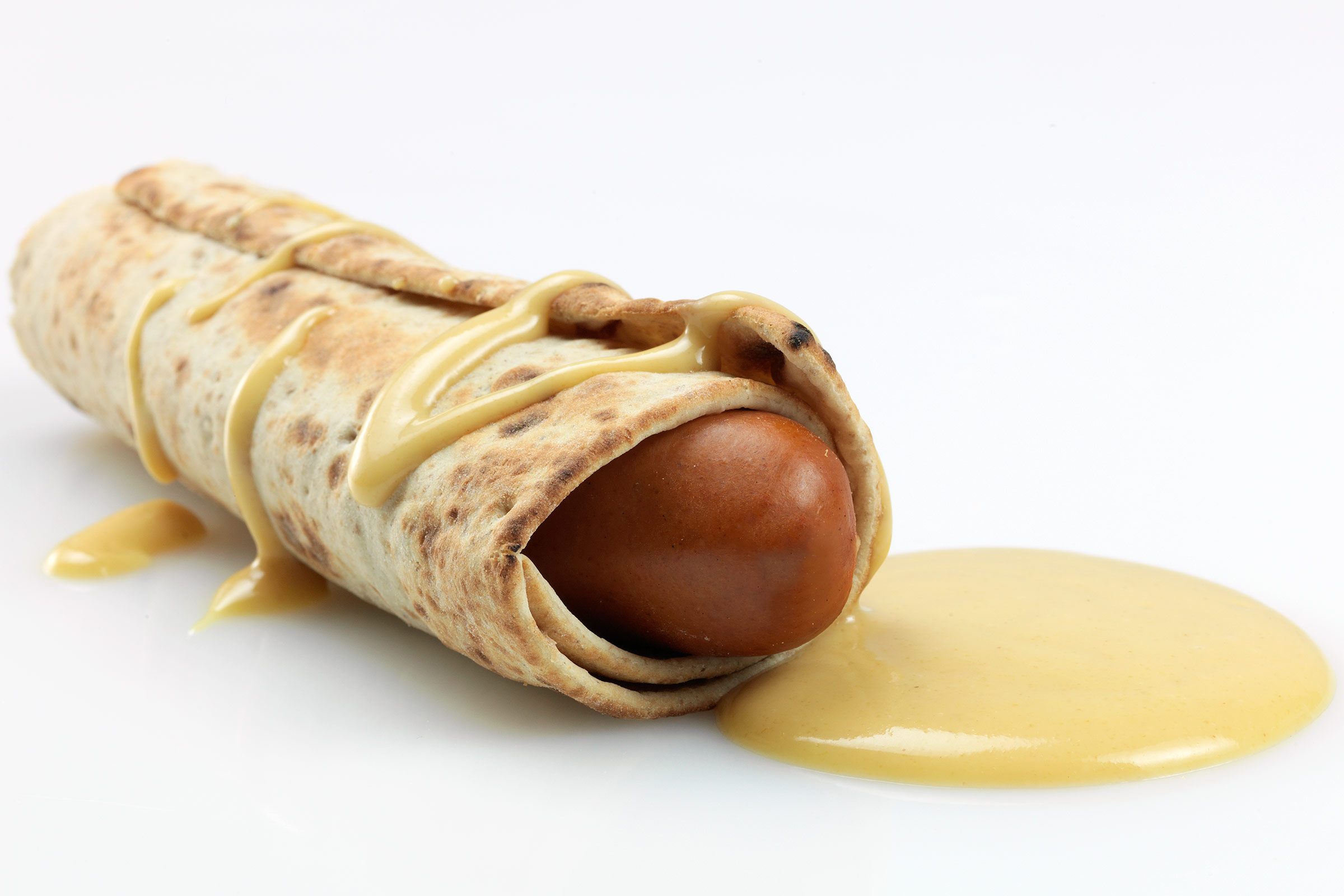 Broil a good hot dog, roll in a tortilla spread with brown mustard. Slice. You know everyone will eat them. —Mark Bittman