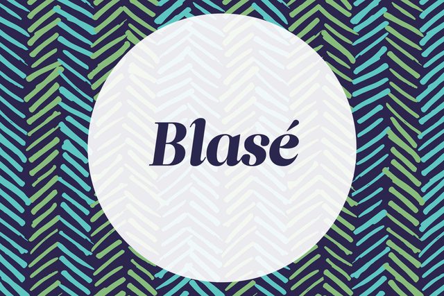 Blasé (adj.) Showing a lack of interest; affected boredom. As in: “Believe me, I may be a bit blasé, but I can still get any man I want.” ―F. Scott Fitzgerald, Gatsby Girls. Putting the word in the context of an 8th-grade vocabulary: I may be a bit blasé, but I can still pass notes to any 9th grader I want.