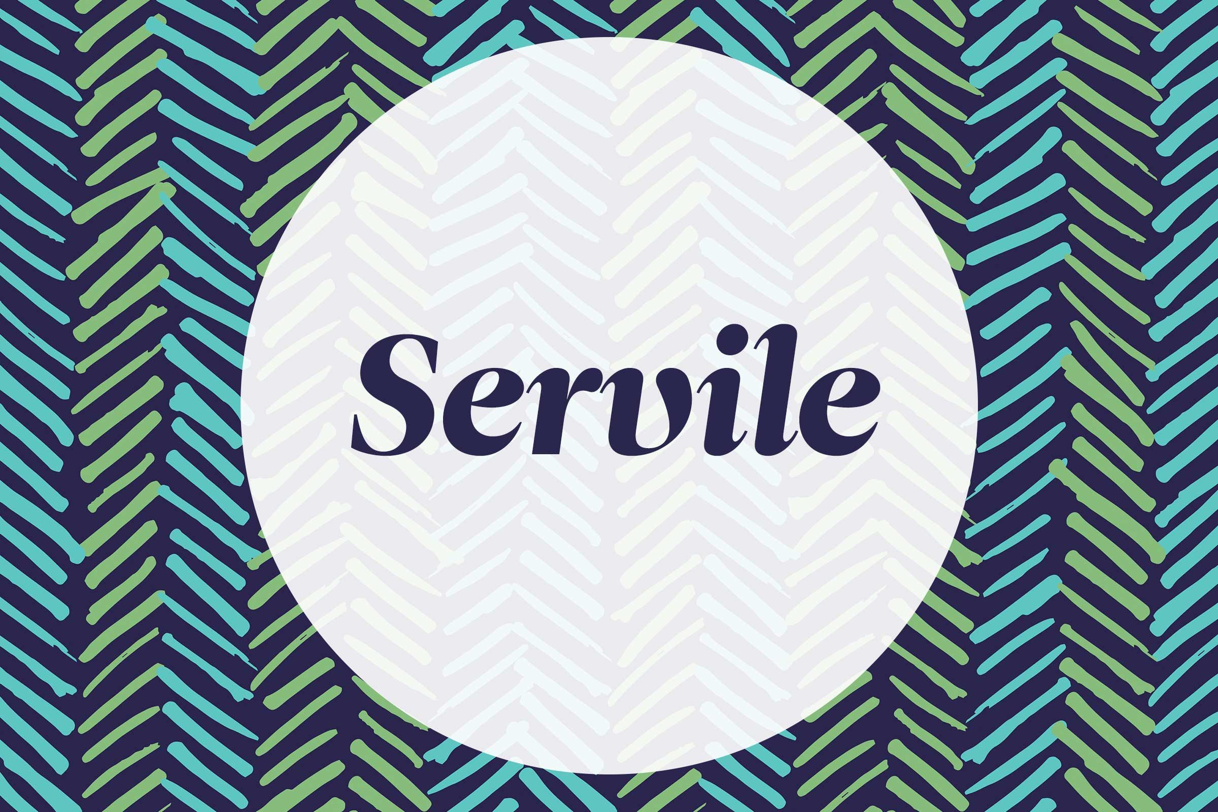 Servile (adj.) Submissive; slavish. As in: “Throw a stick, and the servile dog wheezes and pants and stumbles to bring it to you. Do the same before a cat, and he will eye you with coolly polite and somewhat bored amusement.” —H.P. Lovecraft, Something About Cats