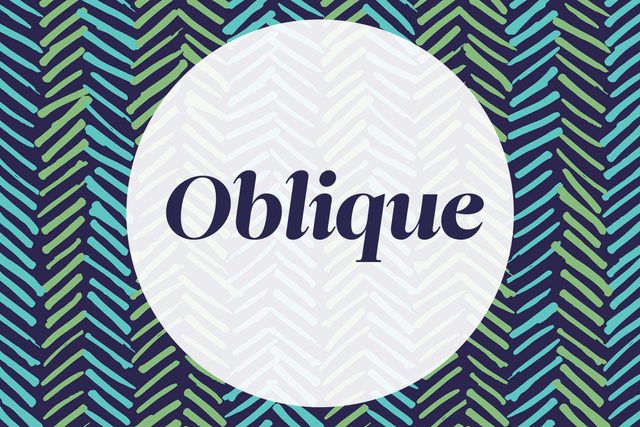 Oblique (adj.) Indirect; slanted. As in: “He watched sleepily the flakes, silver and dark, falling obliquely against the lamplight.” —James Joyce, Dubliners