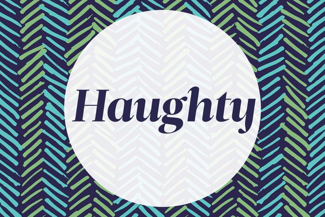Haughty (adj.) Disdainfully proud; arrogant. As in: “Out from the door of the farmhouse came a long file of pigs, all walking on their hind legs…out came Napoleon himself, majestically upright, casting haughty glances from side to side” —George Orwell, Animal Farm