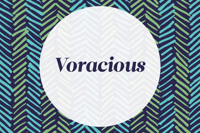Voracious (adj.) Having a huge appetite; ravenous. As in: “It occurred to me that the voracious ambition of humans is never sated by dreams coming true, because there is always the thought that everything might be done better and again.” ―John Green, The Fault in Our Stars.