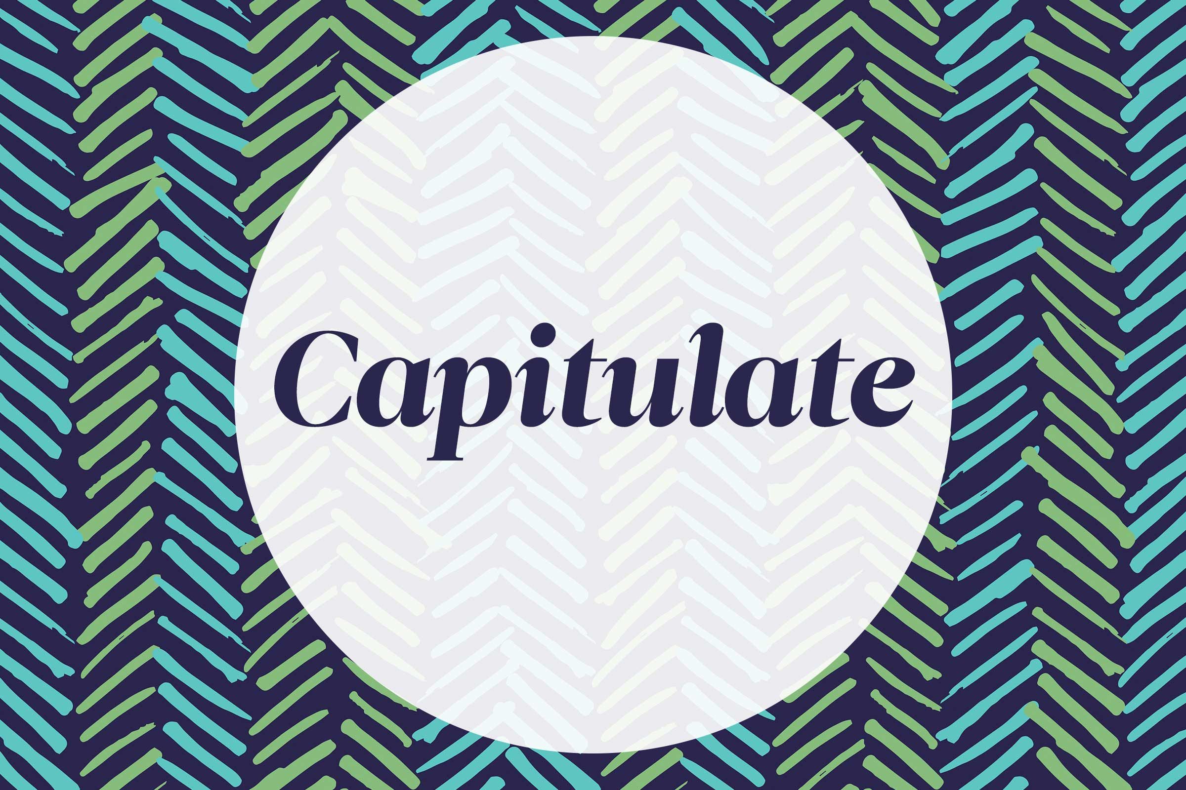 Capitulate (v.) To stop resisting; surrender. As in: “I am ashamed to think how easily we capitulate to badges and names, to large societies and dead institutions.” ―Ralph Waldo Emerson, Self-Reliance.