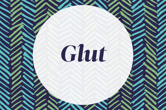 Glut (v.) To fill to excess (think gluttony). As in: “To boundless vengeance the wide realm be given, Till vast destruction glut the queen of heaven!” —Homer, The Odyssey