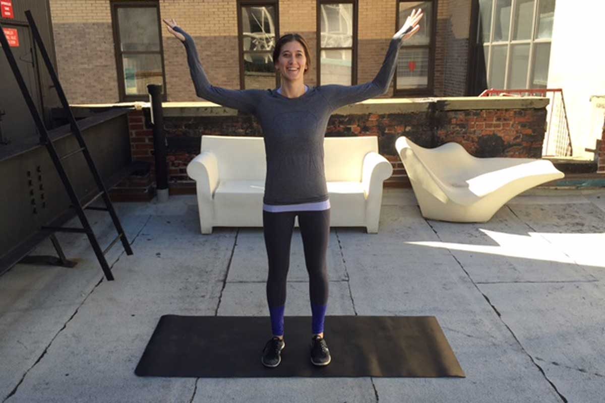 Adam Rosante, a certified CFT and fitness nutrition specialist, recommends this exercise to target those middle to back muscles and lats (latissimus dorsi). “A large majority of individuals have a weak upper back, which contributes greatly to poor posture and shoulder injuries,” Rosante says. “These moves strengthen those muscles, helping to pull the body into alignment.” Standing with your feet hip-width apart, grab a dumbbell in each hand and hold at your sides. Maintain the natural arch in your spine as you press your hips back and lower your torso until it’s almost parallel to the floor, allowing the dumbbells to hang straight down with wrists positioned under the shoulders. Pull your shoulders back and row the weights to your hips. Hold for one second and lower with control back to your starting position. That’s one rep, Rosante says. Do 12 to complete your set. These easy tricks can perfect your posture.