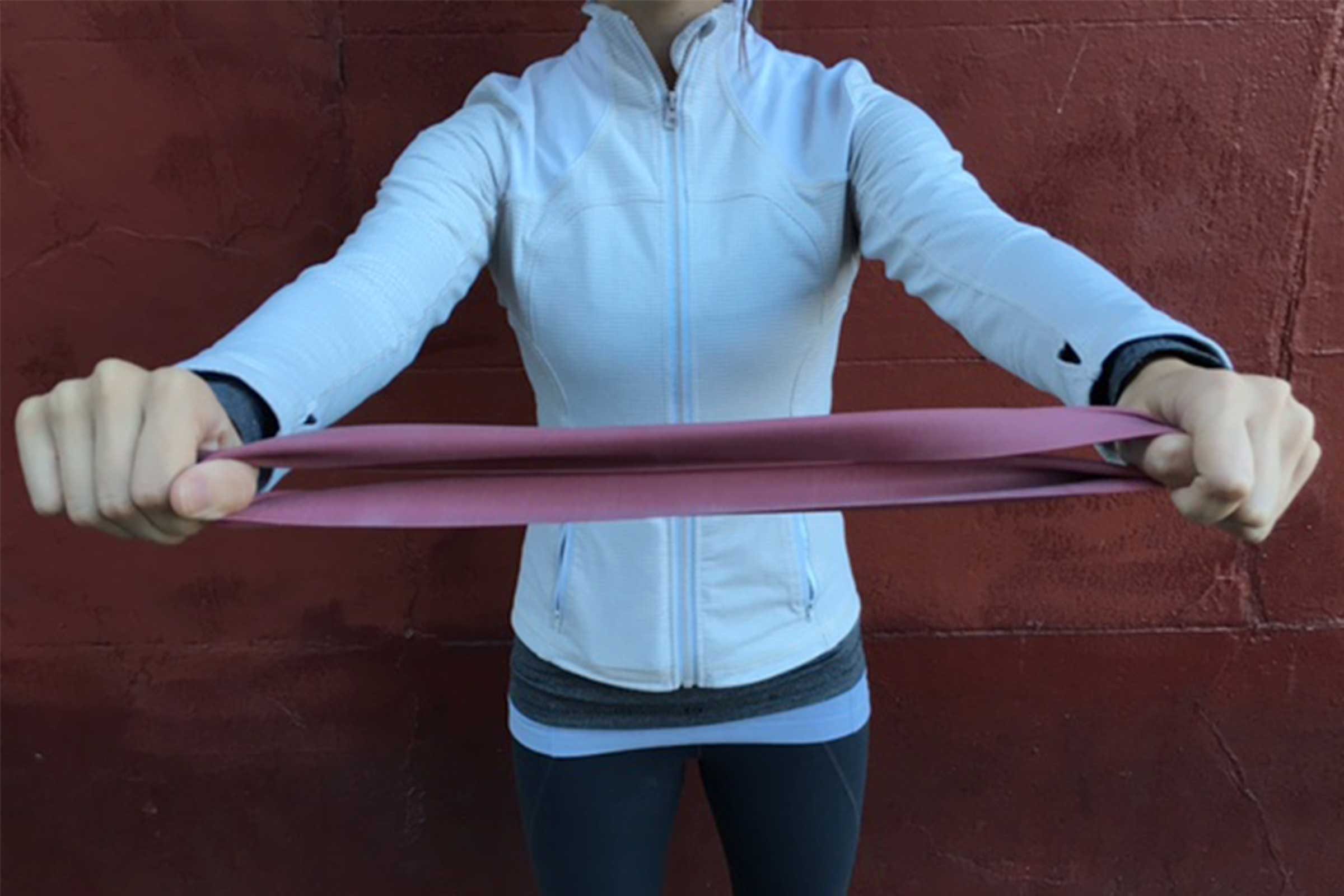 To complete a rep of band pull-aparts, stand with your feet hip-width distance apart, holding the ends of a resistance band in each hand with your arms extended straight out in front of you at shoulder-height. Be sure to relax your shoulders and pull them away from your ears as you squeeze your shoulder blades together and pull the band apart. Return to the starting position. Rosante recommends doing 15 reps to complete the set. (These 9 resistance band exercises will work your entire body.)