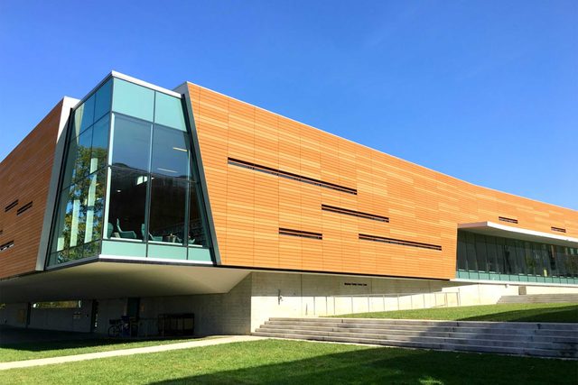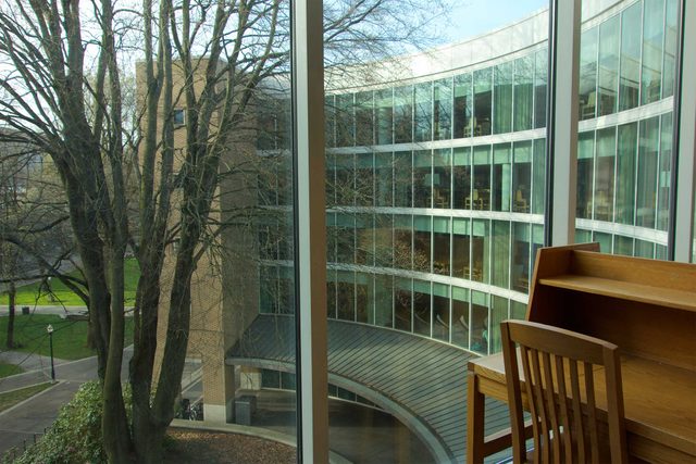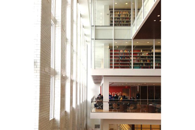 The Hilton M. Briggs Library at University of South Dakota features stunning, floor-to-ceiling windows so that students may read and study by natural light.