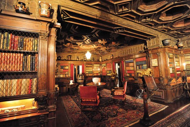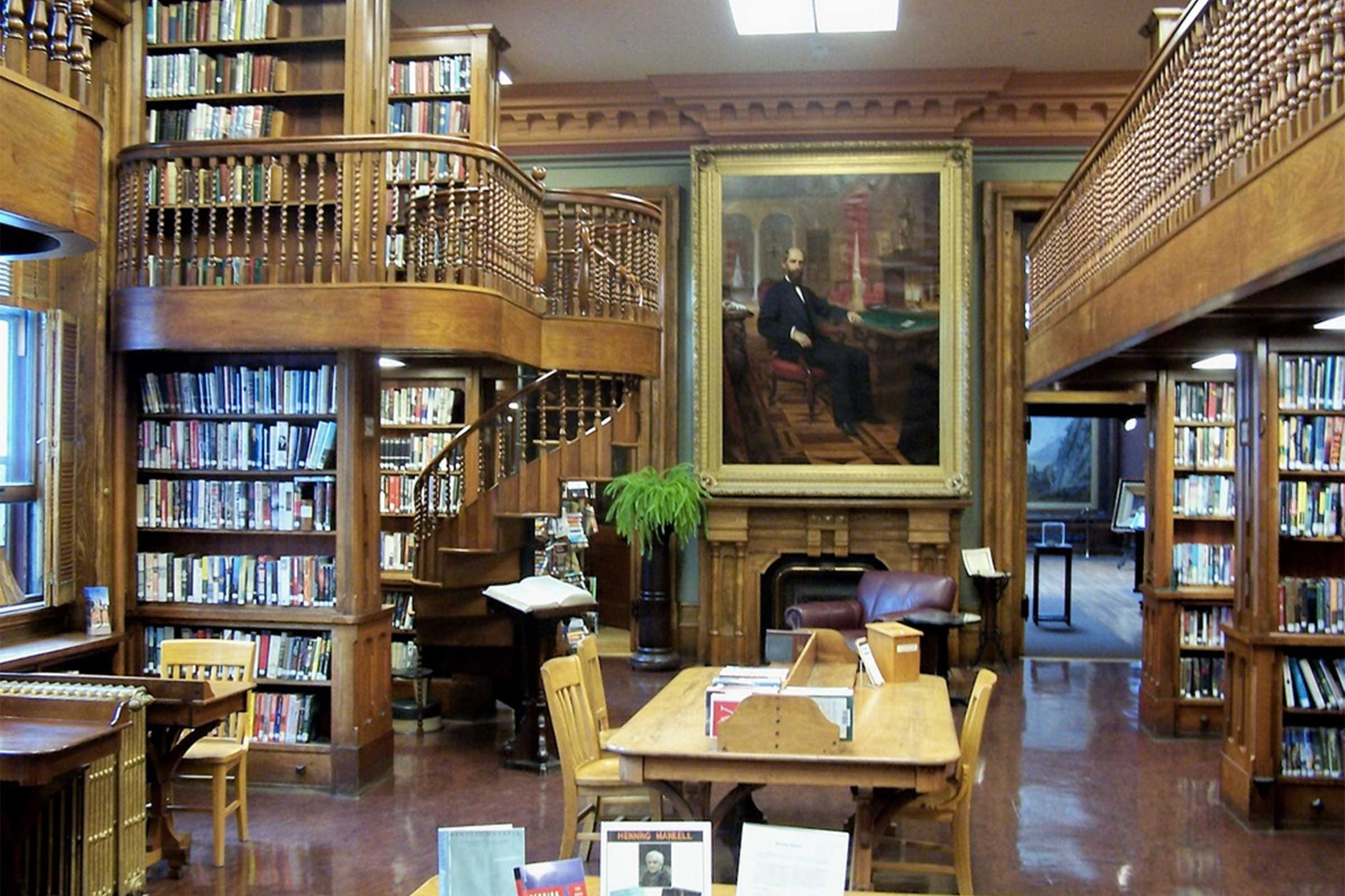 The Hearst Free Library has preserved its stunning turn of the century interior design, full of dark mahogany and velvet upholstery.
