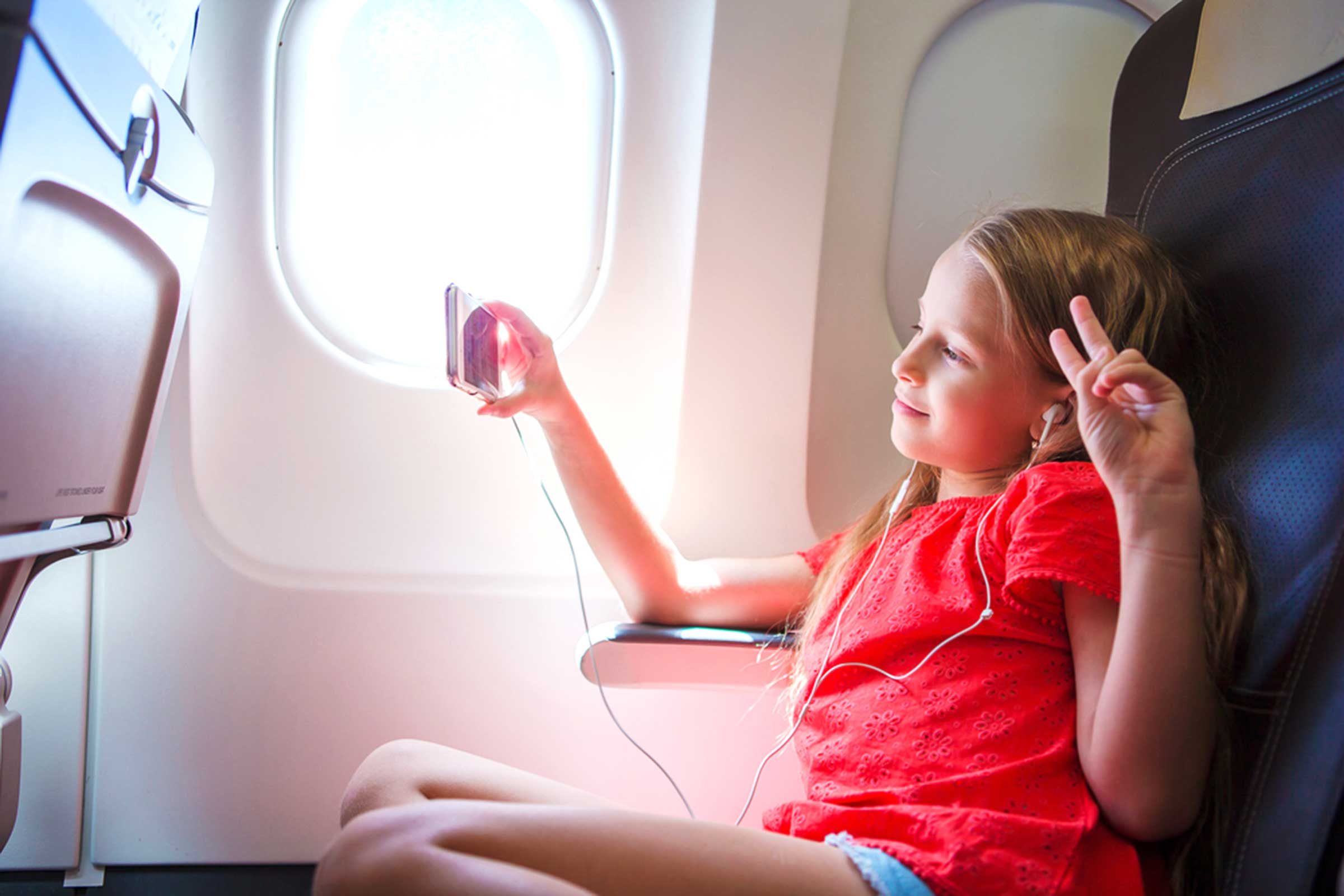 Kids often stay calmer during flights if they aren’t sitting next to other children, says Laermer. “If you get those kids separated, they tend to just sit there and read or watch TV,” he says. “They act like total independent travelers.” If you have more than one kid, have your partner or an older child sit with one, while you sit with another.