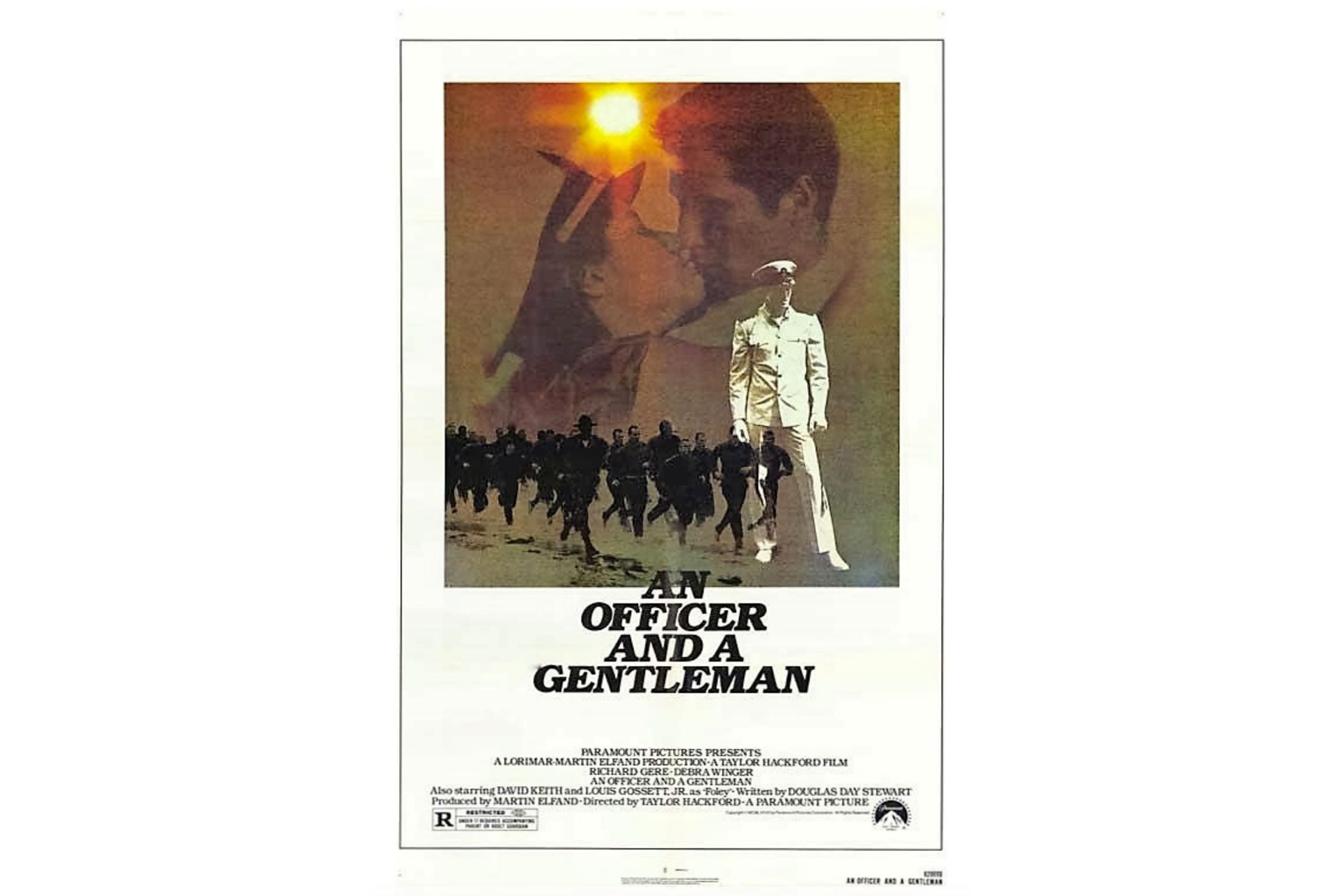 At the end of this drama about how hard it is to become an aviation officer, Richard Gere sports his new white uniform and marches through a dismal paper mill factory. That’s where Debra Winger (Paula) works. They’ve already broken up, and the romance is over—or so you think. But then he takes her in his arms, plants a passionate kiss on her lips, and actually carries her out!