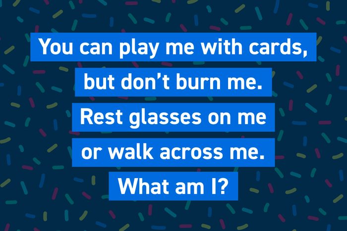 You can play me with cards, but don’t burn me. Rest glasses on me, or walk across me. What am I?