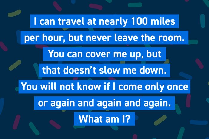 I can travel at nearly 100 miles per hour, but never leave the room. You can cover me up, but that doesn’t slow me down. You will not know if I come only once or again and again and again. What am I?