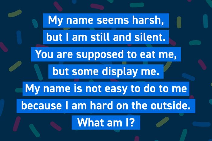My name seems harsh, but I am still and silent. You are supposed to eat me, but some display me. My name is not easy to do to me because I am hard on the outside. What am I?