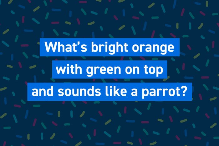 This is one of the trickier riddles for kids because it sends them into the direction of thinking of different types of birds. By using the article before the word, “a parrot,” the phrase sounds is a bit clunky—and that’s what makes it harder. If the riddle used “sounds like parrot” or “rhymes with parrot,” kids would probably get the answer right off the bat.