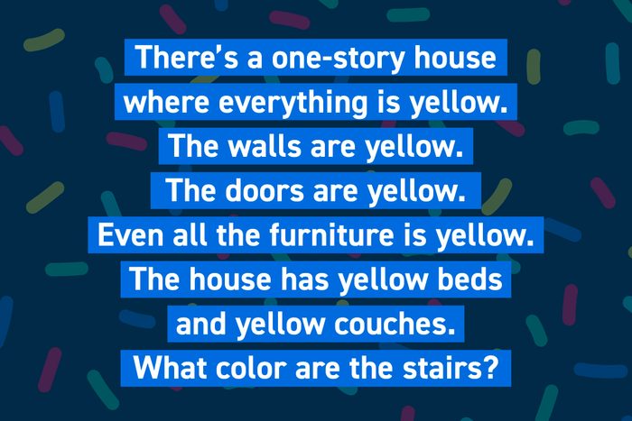 There’s a one-story house where everything is yellow. The walls are yellow. The doors are yellow. Even all the furniture is yellow. The house has yellow beds and yellow couches. What color are the stairs?