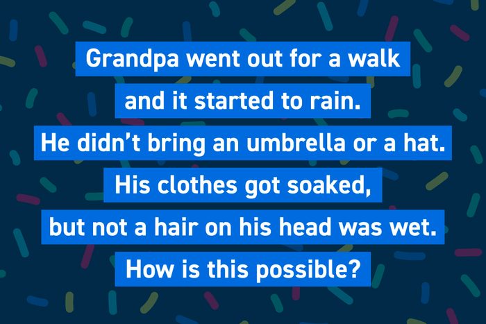 Grandpa went out for a walk, and it started to rain. He didn’t bring an umbrella or a hat. His clothes got soaked, but not a hair on his head was wet. How is this possible?