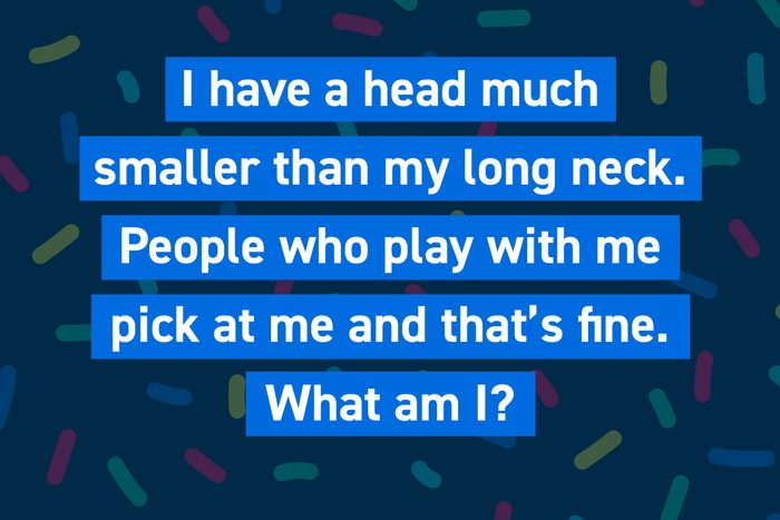 I have a head much smaller than my long neck. People who play with me pick at me, and that’s fine. What am I?