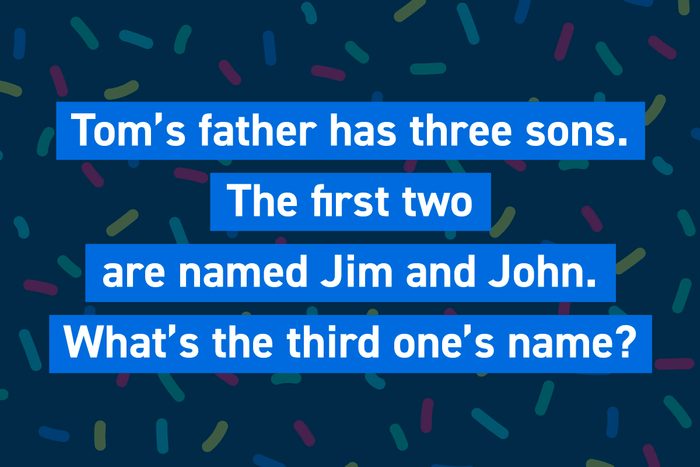 Tom’s father has three sons. The first two are named Jim and John. What is the third one’s name?
