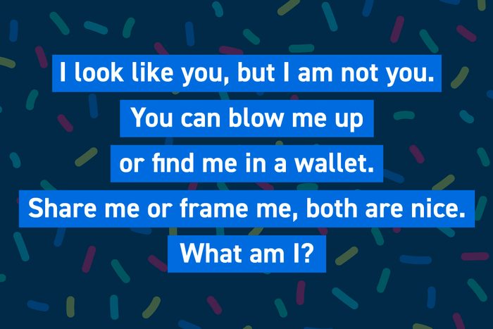 I look like you, but I am not you. You can blow me up or find me in a wallet. Share me or frame me, both are nice. What am I?