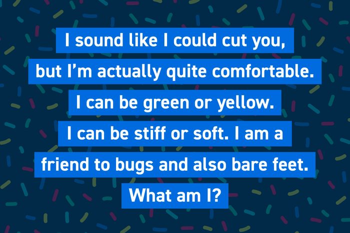 I sound like I could cut you, but I’m actually quite comfortable. I can be green or yellow. I can be stiff or soft. I am a friend to bugs and also bare feet. What am I?