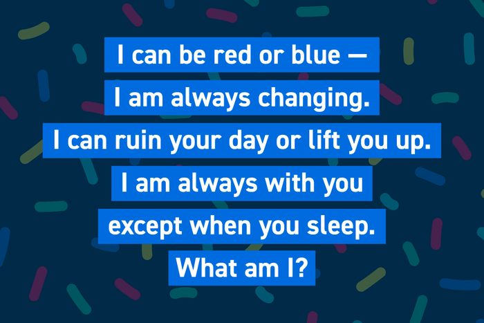 I can be red or blue—I am always changing. I can ruin your day or lift you up. I am always with you, except when you sleep. What am I?