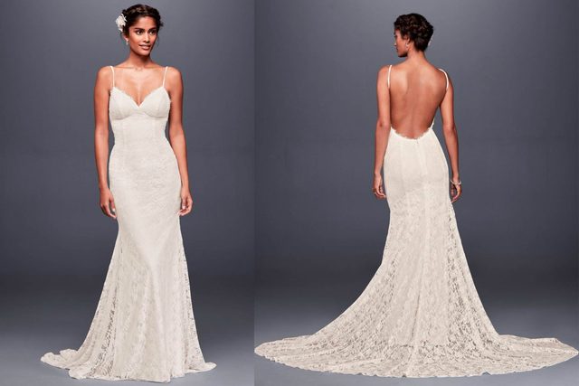 Soft Lace Dress with Low Back, $449; davidsbridal.com