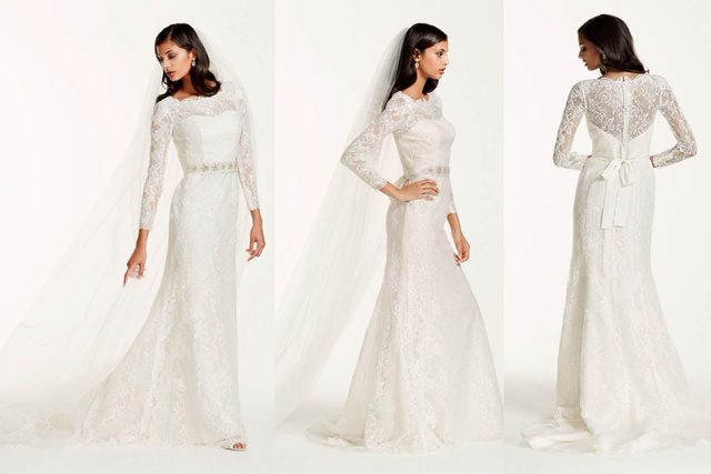 Long Sleeve Wedding Dress with Beaded Lace, $999; davidsbridal.com