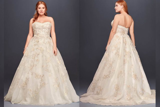 If you’ve been hitting the weights as part of your pre-wedding workout routine, you deserve to show off your toned arms on the big day! Especially if you’re planning to get a great tan, opting for a sleeveless dress is the perfect way for women to showcase their sinewy biceps. “A sleeveless dress allows the bride to show off her arms while providing a supportive neckline,” says Hanson. Prepare to flex those muscles as you toss your bouquet.