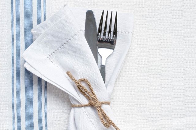 If you’ve got a set of crisp white linen tablecloths, now’s the time to break them out. If not, faux linens are available for less than $10 at most party stores. Fabric will look infinitely more luxe than plastic. Choose one that fits your color palette.