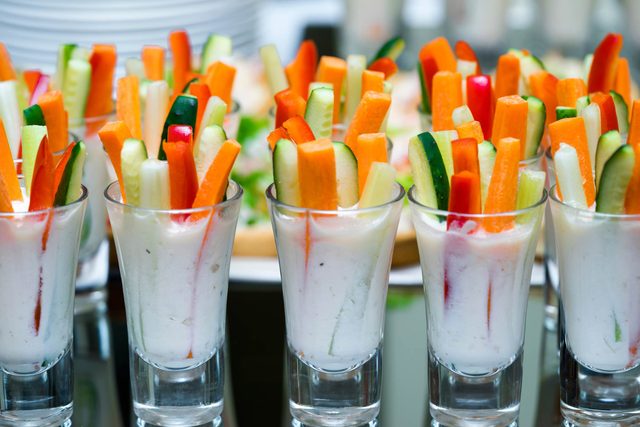 Unless you’ve specified a sit-down meal, most guests will be happy with hors d’oeuvres and dessert. Find a few recipes that match your theme and the bride’s preferences and split the cooking between yourself and the other bridesmaids. Try these easy appetizer recipes.