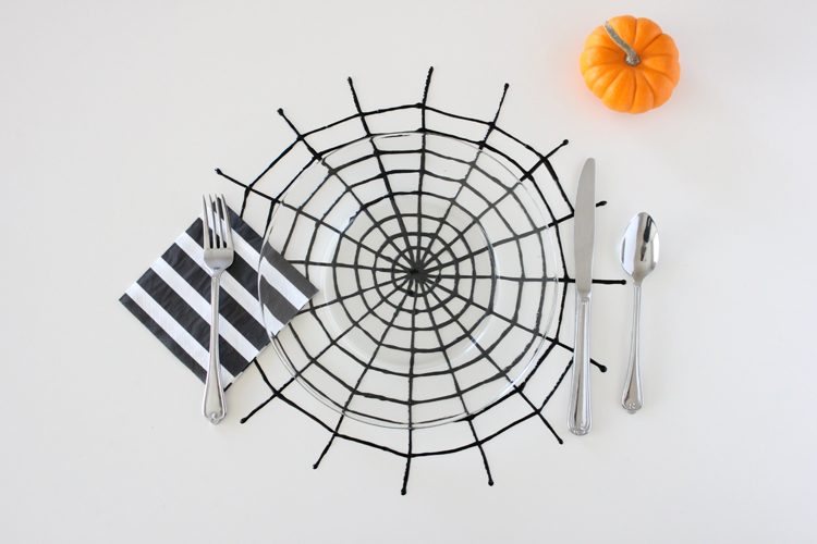This DIY Halloween decoration might excite adults more than kids by instantly amping up your Halloween tablescape. To create it, you’ll need a steady hand and a printout of the spider web place mat template from the tutorial below.
