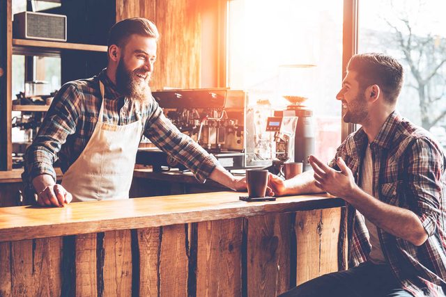 Yes, coffee shops are business-friendly but respect the owners enough to understand they are businesspeople too. Support it. “Don’t ask for water and sit there all day,” Swann says. “Buy something. And if you’re there for a long period, buy a second cup of coffee or a muffin.” Wi-Fi, electricity, and the space cost money. So support the business, especially at a mom-and-pop coffee shop. And here’s what happens to your body when you drink coffee every day.