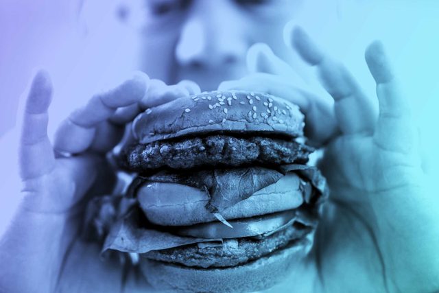Competitive eaters practice by eating and drinking vast amounts in order to stretch out their stomachs for competition. For six weeks before the 2015 Nathan’s Famous Hot Dog Eating Contest, Matt Stonie trained by eating up to 60 hot dogs in a sitting … three times a week. (He won with 62 dogs in 10 minutes.) Champions may go through 30 such trial runs before the actual contest. Stonie also followed some of these meals with nearly a gallon, or 128 ounces, of water. In prepping for a chicken wing contest, he might consume 200 wings at a time. Now consider that scientists guess the average stomach holds 0.06 to 0.45 gallons’ worth of contents at its maximum—this means eaters must transform their stomachs in unnatural ways. In a 2007 University of Pennsylvania study, researchers looked at the stomachs of two men—a normal eater and a competitive eater—as they ate as many hot dogs as they could eat in 12 minutes. They described the eater’s stomach as a “massively distended food-filled sac occupying most of the upper abdomen.” Even these eaters, though, might be daunted by the world’s biggest burger!