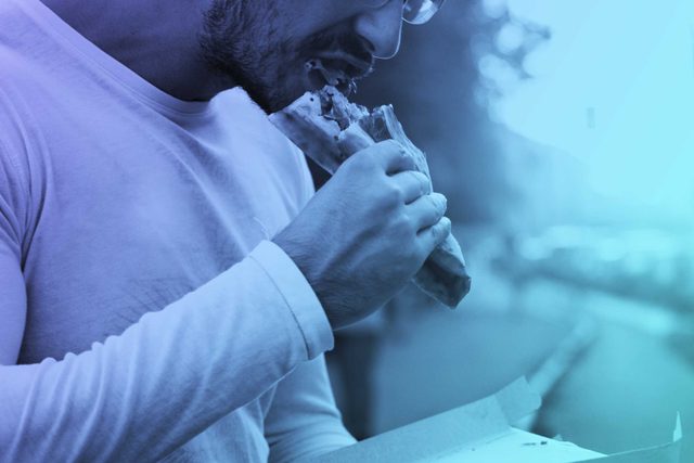 Joey Chestnut, the eight-time winner of the Nathan’s Famous Hot Dog Eating Contest, downed 69 dogs in his 2013 victory. That adds up to a staggering 21,321 calories, or more than four-and-a-half times a typical Thanksgiving dinner (around 4,500). It’s also the number of calories that most people take in more than eight and a half days. Want to give yourself mental heartburn? Picture stockpiling an entire week’s worth of food—then eating it all at once. Yikes! In case you’re wondering what happens to your body when you binge eat on Thanksgiving, here it is.