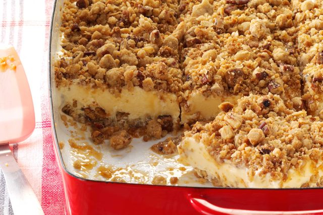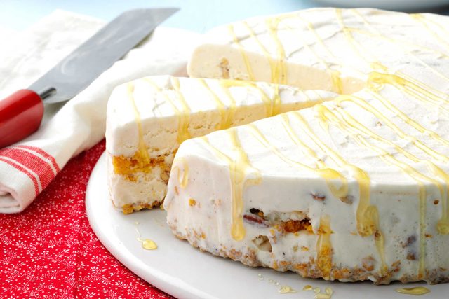 We created this ice cream cake to mimic the popular dessert in many Mexican restaurants without the deep frying. It’s a no-fuss treat that feeds a crowd. Plus, it’s conveniently made ahead. —Taste of Home Test Kitchen