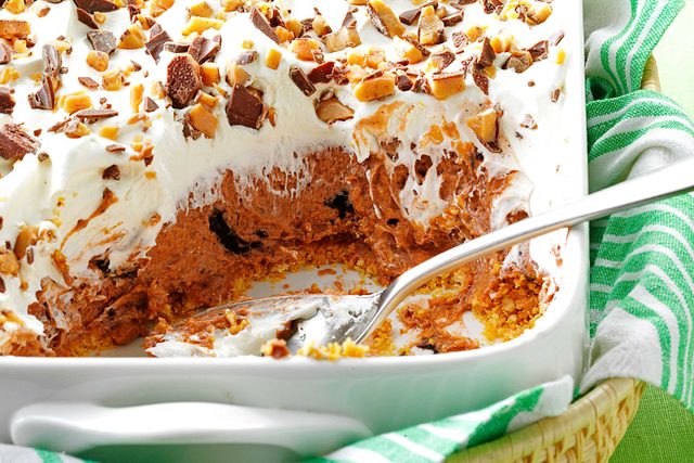 Our family loves dessert, and this chocolaty, layered treat is one of Mom’s most-requested recipes. It’s so easy to prepare! —Kimberly Laabs, Hartford, Wisconsin