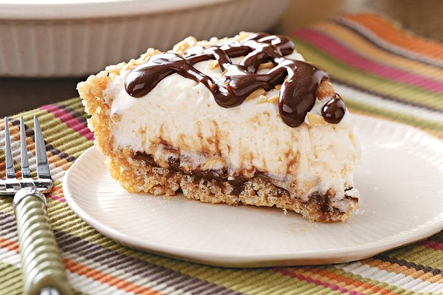 If you like peanut butter, you’re going to love this pie! It can be made ahead and frozen, so it’s perfect for drop-in guests. —Nina Rufener, Rittman, Ohio