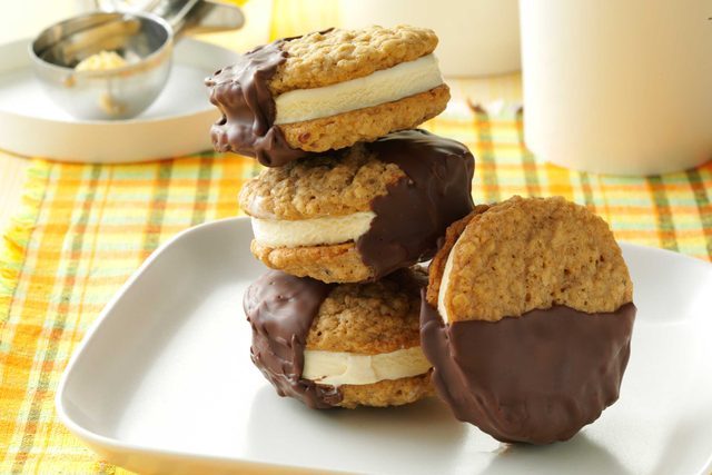 You’ll discover why the treat is so popular in San Francisco. It’s snack heaven…ice cream, delicious oatmeal cookies, and a touch of chocolate. Swap out the vanilla for your favorite flavor, such as chocolate, caramel, or cherry. —Jacyn Siebert, San Francisco, California