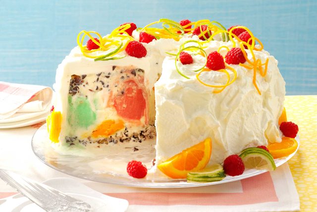 No one will believe you didn’t fuss when you bring out this show-stopping cake. On a hot summer day, it will melt all resistance to dessert—one cool, creamy slice at a time. —Barbara McCalley, Allison Park, Pennsylvania