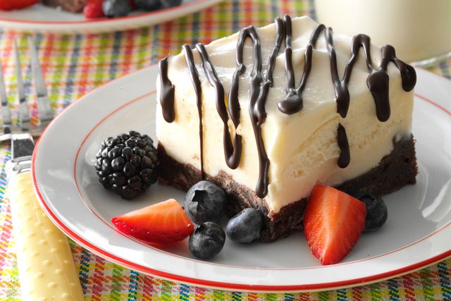 I wanted to make my youngest son an ice cream cake one year for his summer birthday, as he prefers ice cream to the traditional cake. He picked the flavors and I decided to try my favorite brownie recipe as a crust. It worked! —Krista Frank, Rhododendron, Oregon
